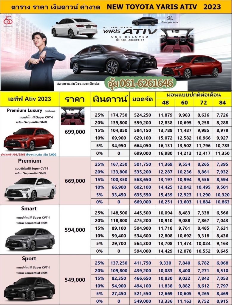 Toyota Yaris Ativ 2023 รุ่น Premium ราคา 669,000 บาท